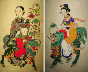 2004年9月嘉德广州国际拍卖公司举行了王树村藏年画精品专场拍卖会,引起社会的广泛瞩目,王树村先生是我国著名的年画收藏家,中国美术馆珍藏的精品年画大多来自于先生的捐献。此次拍品中有些已是传世孤品,十分珍贵。拍品中一对清初天津杨柳青制作的门神以82000元落槌,可见这些藏品被人的追捧程度,可是在此之前,年画这种民间艺术形式,不仅不被重视,几乎不能出现在国家艺术殿堂,更甭说进入拍卖会拍卖了。纵观绵延两千年悠久历史的年画,其中的门神画代表着年画的最高艺术成就,是中国传统传统文化在绘画领域的一个代表,它就像一部反映民间生活的百科全书,内容既丰富又多姿多彩。不论在那里见到这类门神,便被扑面而来的中国元素所感染、所弥漫,它已经成为中国文化的符号。
