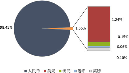 从投资币种来看,人民币产品发行了8027款,环比减少2173款,市场占比上升0.53个百分点至98.45%;美元产品发行了101款,环比减少81款,市场占比下降0.51个百分点至1.24%;澳元产品发行了12款,环比减少6款,市场占比下降0.03个百分点至0.15%;港币产品发行了5款,环比减少1款,市场占比保持不变,仍为0.06%;英镑产品发行了8款,环比减少2款,市场占比保持不变,仍为0.10%。(图2)