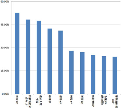 收益表现最好的前十产品较上月表现优秀,值得引起注意的是,有两款FOT入围。(图10)