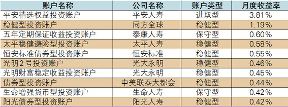 投连险账户业绩表现:平均月度收益率为-1.47%,平安人寿精选权益投资账户表现最佳