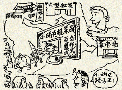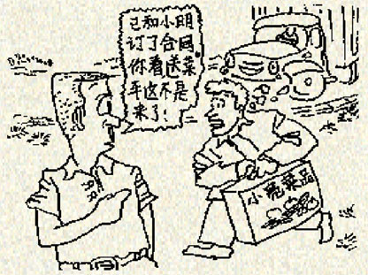 小明开始了种菜卖菜的生计。他到附近村庄收购这些用土法种植的有机农产品,然后供货给城里那些签好订单的超市和菜场。因为销量好,很多菜农都供货给小明,小明很快就盖了大房子,还娶上了媳妇。
