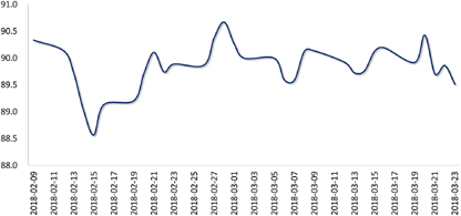 当地时间上周三,美联储如期加息。在此之前,美元指数受加息预期提振,小幅走高;加息预期落地后,美元大幅下跌。周五,特朗普政府公布对华贸易措施,美元加速下跌,收于89.453,当周累计下跌0.75%。人民币兑美元整体波动不大,周五收于6.3240,当周累计小幅上涨0.01%。