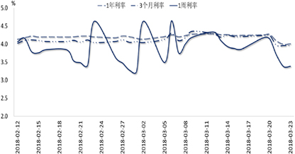 上周,美元指数先涨后跌。周初,离岸人民币基本跟随美元走势,但在特朗普政府公布对华贸易措施后,离岸人民币对美元一度贬至6.34的位置,周五在境内人民币中间价保持稳定的情况下,离岸人民币回涨,收于6.3137,较前一周对美元升值约130个点。人民银行在美联储加息后提升了在岸人民币市场逆回购利率,利差的缩窄促使离岸人民币掉期点全线走低,其中1年期掉期点跌破1000点,为2014年6月以来最低。