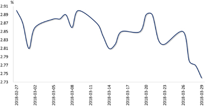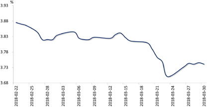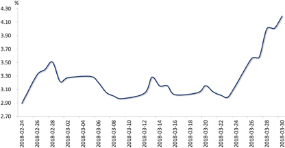 债券市场:对中美贸易战的避险情绪逐步消退,且深改委审议通过资管新规,市场静待具体规则落地,加上资金面趋紧,交易情绪谨慎,债券收益率反弹。截至上周五,10年期中债收益率较前一周五上行4BP至3.74%。