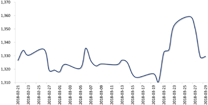 上周,因中美贸易紧张局势有所缓和,市场避险情绪降温,加之美元低位反弹,带动国际金价从高位下滑,但由于西方主要国家与俄罗斯之间的紧张局势升温,金价仍获潜在支撑。上周五,COMEX黄金期货价格收盘于1329.6美元/盎司,较前一周下跌0.38%。