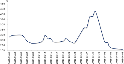 债券市场:尽管3月官方制造业PMI为51.5,好于预期;且上周财政部公告称将招标发行450亿元3年期和450亿元7年期国债,创单期国债最大发行规模,增加一级市场供给压力。但流动性整体宽松,叠加中美贸易战持续发酵带动避险情绪升温、一级市场配置需求旺盛、美债收益率下行,10年期国债收益率下行。截至上周日,10年期国债收益率较前一周五下行4BP至3.70%。