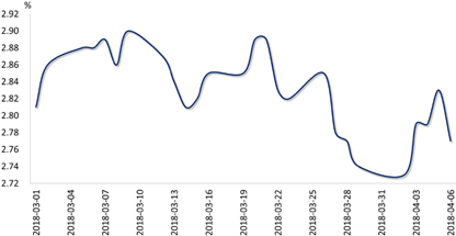 上周,美元指数先扬后抑:周初,因中美贸易紧张局势有所缓和,市场风险情绪改善,美元指数企稳回升;但随后,中美双方公布加征关税商品清单,贸易摩擦进一步升级,加之美国公布的3月非农就业数据不及预期,美元指数承压下挫,周五收于90.108,较前一周升值0.15%。人民币表现相对疲弱,人民币对美元即期市场收盘价连跌三日,4月4日收盘于6.2999,较前一周贬值0.42%。
