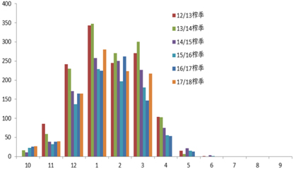 图9 国内月度产糖量(万吨)