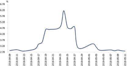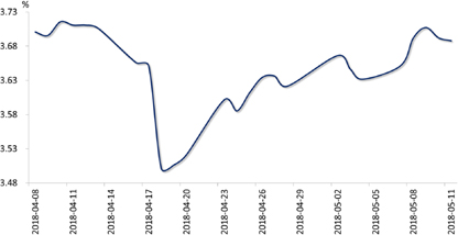 债券市场:上周,因进出口数据大幅好于预期,以及信用违约风险事件频发,国债收益率明显上行,后因CPI弱于预期、流动性宽松,收益率有所回落。截至上周五,10年期国债收益率较前一周上行6BP至3.69%。