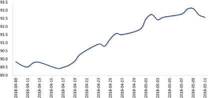 上周初,美元指数延续强势,一度刷新年内高位93.11;但周四公布的美国通胀数据表现不佳,淡化了市场对美联储加快加息的预期,美元指数高位回落,周五收于92.58,与前一周收盘价持平。相应人民币兑美元周初承压,一度跌至6.3784。后伴随美元指数回调,加之客盘结汇需求增加,人民币兑美元由跌转涨,周五收于6.3351,当周累计上涨0.38%,结束此前连续三周调整。预计美元本轮反弹尚未结束,人民币升值空间有限。