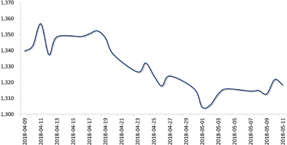 上周,美元指数连续上涨后高位震荡,加之特朗普政府宣布美国退出伊朗核协议,黄金价格窄幅震荡,全周小幅收涨。截至周五收盘,COMEX黄金期货价格当周累计上涨0.18%至1318.4美元/盎司。