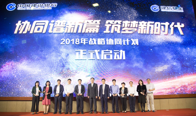 会议现场启动了“协同谱新篇,筑梦新时代——2018年建设银行-建信基金战略协同计划”。(建信基金)
