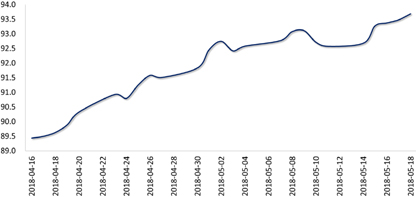 上周,美债收益率持续走高带动美元连续上涨,加之意大利“疑欧”政党联盟即将上台,市场对欧元区的政治前景担忧升温,欧元承压下跌,进一步提振美元,美元指数不断刷新年内高位,周五收于93.69,当周累计上涨1.20%。美元指数走强,令非美货币承压。人民币兑美元中间价震荡下跌,但美元阶段性走高激发了市场结汇需求,从而限制了人民币下跌幅度,人民币兑美元即期市场成交价周五收于6.3760,当周累计下跌0.64%。