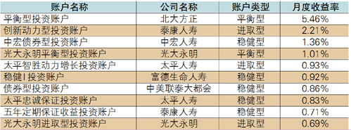 投连险账户业绩表现:平均月度收益率为-0.81%,北大方正平衡型投资账户表现最佳