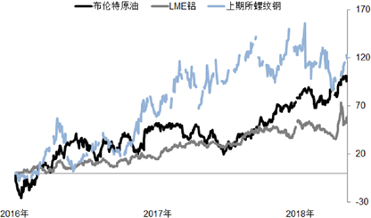 图2 原油、铝、螺纹钢价格走势,2016年至今
