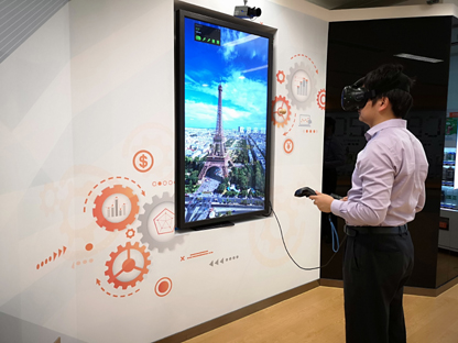 在体验区,让记者久久驻足的就是VR购物体验区了!记者戴上VR头盔和手环等装备,分秒间,记者就“来到”了巴黎老佛爷,这就开始一场畅快淋漓的买买买之旅吧!精致的美食令人垂涎,漂亮的靴子双双想要,刷卡时轻松自如……接下来,我们还可以去纽约的第五大道玩一回!(图3)
