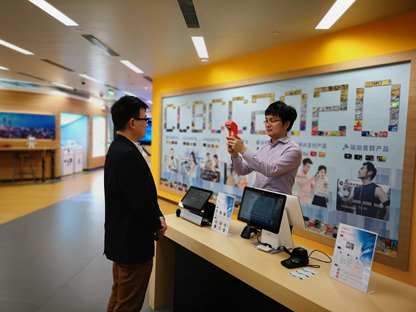 实验中心的另一个区域是“创新研究区”。这里展示了建行信用卡在技术、产品、流程、服务等方面的创新成果。魔镜、龙卡贷吧、租房分期、人脸识别支付、新型收单机具、鹰眼、智能反欺诈……小编抢“鲜”体验了其中几项。