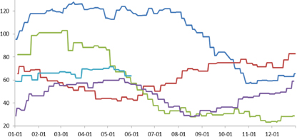 图6 近五年国内棕榈油港口库存走势图(万吨)
