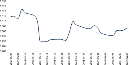 上周,因美元疲弱,加之欧盟、墨西哥先后宣布对美征收报复性关税,增加了市场对贸易保护的担忧,避险情绪推升黄金价格。截至上周五收盘,COMEX黄金期货价格上涨0.43%至1303.5美元/盎司。