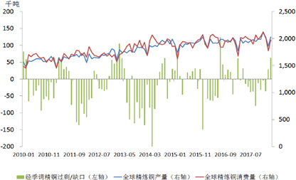 供给方面,2018年下半年铜矿产量有望保持上半年水平,但下半年仍有较多矿商面临薪酬谈判,容易阶段性干扰,概率低于去年水平。废铜虽然进口大幅下滑,但每吨废铜的含铜量在市场博弈下不断提升,整体看供给在下半年能实现低速增长。