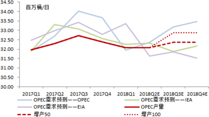 供给预测分歧较大。OPEC和IEA预测下半年非OPEC供给增长200万桶/日左右,增速稍有抬升,2018全年非OPEC供给增长180万桶/日,主要增长仍来自美国。EIA预测下半年供给增加300万桶/日,远高于OPEC与IEA预测,主要由于其对北美产出有更高预期。但我们认为EIA预计过于乐观,受运输瓶颈影响北美供给增速将受限。