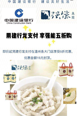 建行温州鹿城支行——强能鱼圆龙支付消费五折优惠