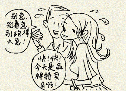 小明不爱逛街,可他的女友却是个逛街狂,一到周末就拉着他去商场。恰逢几个大型品牌专卖店正在搞特卖活动,偌大的大厅里排了好多货架,密密麻麻挤满了人。