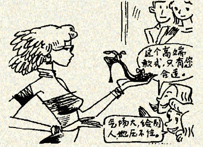 女友又拉着小明进了一家名牌鞋店。这家店里的销售员正在接待一位眼戴墨镜、衣着华丽的女士,服务态度特别好。