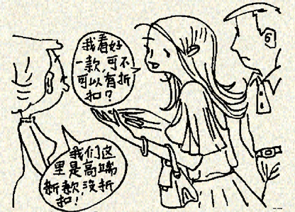 女友看中了某款鞋子,询问有没有打折。对方一听,笑容就淡了,“本店商品都是实价,从不打折。”并以同事招呼自己去为旁边那位女顾客找鞋为由,匆匆走开。