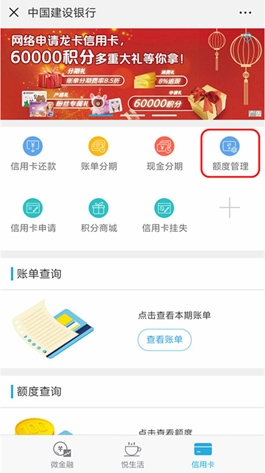特别提示:通过此方式调升永久额度前,应先将信用卡账户绑定至“中国建设银行”微信号。微信号内回复关键词“绑定”即可操作绑定。