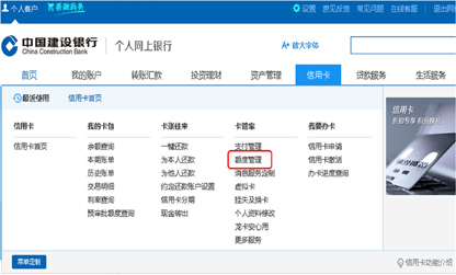 登录中国建设银行个人网上银行,选择顶部菜单“信用卡”-“额度管理”,并按提示操作申请。(陆晓莉)