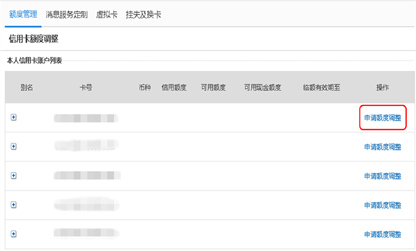 ◆ 自助渠道调额申请不支持学生卡、公务卡、益贷卡及商务卡等。