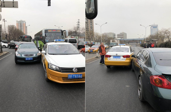 出租车是营运车辆,其驾驶员在道路上行驶的时间比一般人长很多。出租车驾驶员遇到的各种事故多,事故处理的经验相对比较丰富。遇到此类剐蹭事故时,出租车司机一般会理直气壮地告诉我们,这个事故他是无责方。如果我们缺少事故处理的经验,往往会被出租车司机的这种气势所压倒,失去冷静判断事故原因和正确处理事故的机会。尤其当我们将车辆挪离事故现场后,无意中毁坏了第一现场还有可能产生对我们不利的痕迹,极有可能导致我们不得不接受事故全责的现实。
