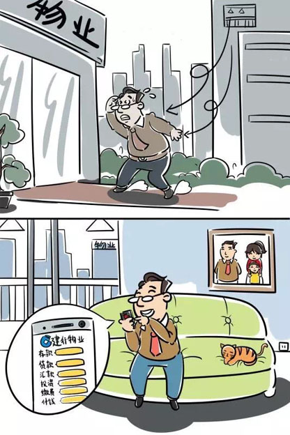 几年前,叔叔们为了琐事经常往返于物业和家之间,阿姨们为了交物业费还要讨价还价,现在建行将“账户出海”嵌入物业公司的社区APP,存、贷、汇、投、缴、付等六大功能轻轻松松在家实现。