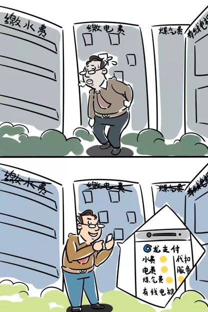 几年前,缴交水、电、煤、有线电视等公用事业费需要东奔西跑,现在不仅可以在合作方APP上通过建行“龙支付”接入结清账单,还可以享受代扣服务。