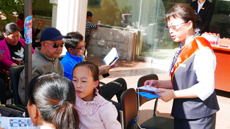 建行浙江省温州分行志愿者走上街头,向市民普及金融知识,开展普惠金融宣传。■ 彭荷叶/摄