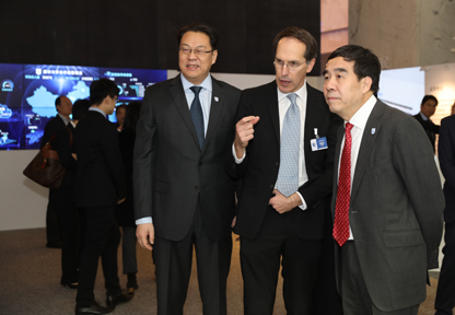 为参会嘉宾参观建行大学网络平台用户体验区。