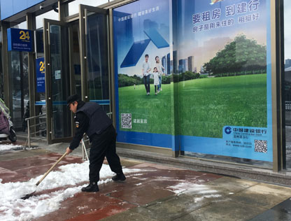 贵阳城北支行为前来办理业务的客户铲出一条平安之路。