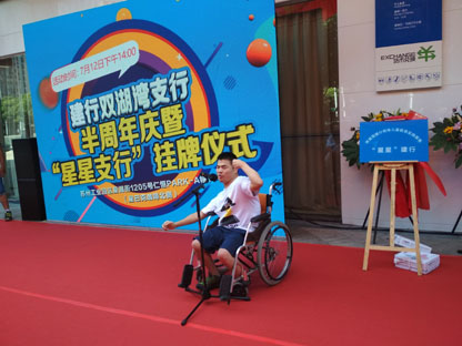 第四步是星星建行,筑品牌。在双湖湾支行举办“星星建行”挂牌仪式,活动还邀请了周边社区主任参加,完善公益的同时,提高了支行的知名度和美誉度。“星星建行”作为园区支行“守护计划”的一部分,支行党委把它定位成“一个平台、一个窗口、一个基地”。