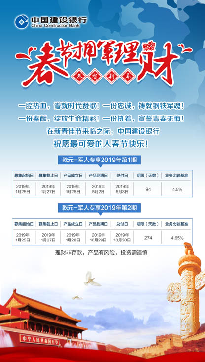 “拥军保”是建设银行和建信财险联手推出的为军人及军属提供多层次、多类别和长期均衡的专属保险保障。“拥军保”系列产品包括账户安全保障、人身意外保障、交通出行保障、航空意外保障、家庭财产安全保障。“拥军保”账户安全保险,为军保卡多一份资金安全保障,承保军人客户名下的所有建行账户(包括军人保障卡及辅卡、信用卡主卡及附卡、电子账户)挂失或冻结前48小时内的资金损失,保费低至2.5元,最高保额可达100万元。“拥军保”军属人身意外伤害保险,为军人家属定制人身意外安全保障,对军人家属因遭受意外伤害导致身故、伤残进行补偿,保费最低135元起,保额最高50万元。“拥军保”家庭财产保险,为军人及军属定制家庭房屋财产安全保障,对房屋及室内装潢、室内财产提供财产安全保障,保费最低40元起,最全豪华版套餐包括房屋、房屋装修、室内财产、水暖管破裂、三者、盗抢、现金珠宝盗抢系列保障。“拥军保”交通工具意外伤害保险,为军人及家属定制交通工具意外安全保障,对乘坐飞机、轮船、火车、汽车时遭受意外伤害进行补偿,保费最低64元起售,享受军人专享优惠价格。“拥军保”航空意外伤害保险,为军人及家属定制航空意外伤害安全保障,保障国内航线的航空意外及航空延误,分航次型和一年期型,保费最低10元起售,保额最高100万元。(季萱)