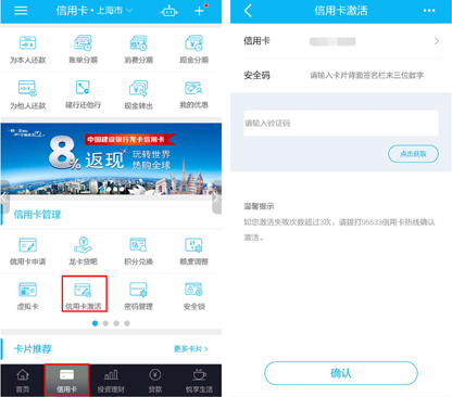 不知道怎么激活?登录手机银行,点击“信用卡”-“信用卡激活”。