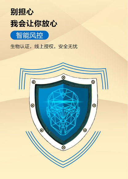 别担心,建行惠懂你使用生物认证,人脸识别,具有企业级安全防护,采用工商、税务、司法、公安、同盾等数据,全方位守护你的创业资金。