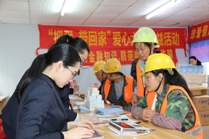 最近,建行广东省东莞分行领导带队走进了万科东心翡翠松湖建筑工地,开展“把爱.带回家”爱心公益活动,为在场的民工兄弟送上“爱心大米”,并提供温暖实惠的全方位综合服务。