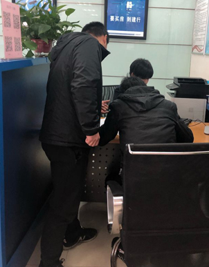 随着白纸不断地被勾画填充,客户的业务也顺利办结,通过进一步的了解,仇新敏被客户虽身残志坚的精神所感动。他想通过自己的双手赚钱养家,这次来就是办理工资卡。客户写到,本以为会遇到许多困难,没想到建行的服务这么优质、高效,他打心底里感谢。