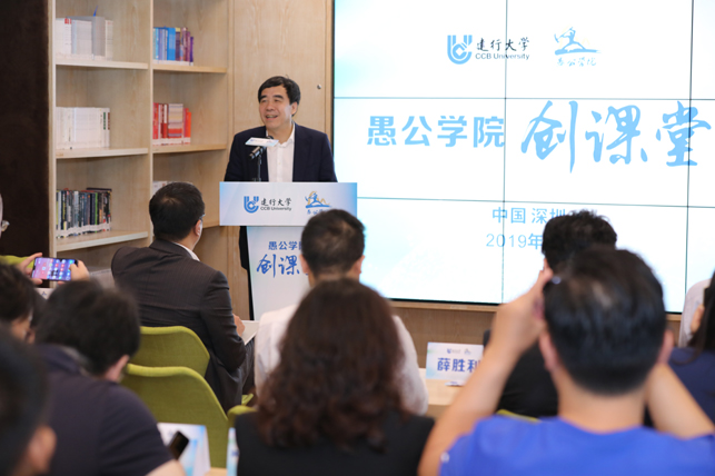 建行党委书记、董事长、建行大学校长田国立应邀为愚公学院首期“创课堂”活动开讲并致辞。现场与创业者分享了由他命名的愚公学院“大智若愚”的内在精神含义。