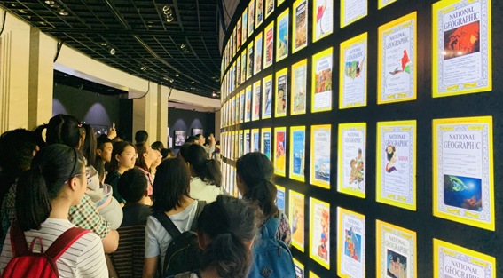 第一部分为历史影像——照片墙,上面展示的是130年来《国家地理》杂志的经典封面。这里有一个有趣的故事,早期的封面上都有花果叶的装饰框,到后面才变成我们熟悉的小黄框的样式,一开始设计师去掉花叶边框,没想到收到大量投诉,设计师无奈只能变回原样,但是设计师也想推进封面的改革,慢慢用半遮盖式边框推进,直到1960年才变成小黄框。六大展区依次为“危险之地”“生命之歌”“多样文化”、“摄影精粹”“愤怒大地”“走近科学”,从世界的探索到解开动物之谜,再到文化的探索与交流、摄影技巧的搭建、科学等生活的方方面面,全面揭示这个世界的真实面貌,带给我们人与世界、人与自然、人与生命等各方面的思考,这是艺术根据各地风俗习惯与时代精神带给我们最深处的感受,让我们用理智的态度,运动感官、调动情感把高级的艺术变成通俗的感受,当做生活的调味品。