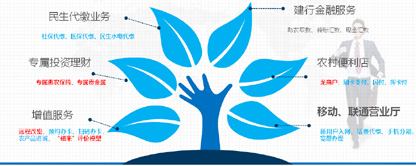 目前已叠加服务场景十个:打造金湘通+联通、金湘通+移动、金湘通+电信、金湘通+电力局、金湘通+卫生院、金湘通+连锁商超、金湘通+电商、金湘通+中石化、金湘通+58农服、金湘通+智慧政务十类非金融服务场景。
