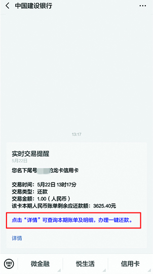 日前,龙卡信用卡账户变动微信提醒服务以全新面貌在“中国建设银行”微信号上线。升级后的微信账户变动通知功能,可以做到笔笔交易,免费通知,开关随心。