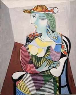 毕加索说:“当一个画家看到他所要画的对象的正面时,难道对象就没有侧面和背面么……我们能不能‘同时地’把它们画出来呢?也就是说能不能用‘二维’的画布画出‘多维’的物体呢?”