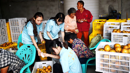 重庆綦江下乡学子帮助果农分拣梨子